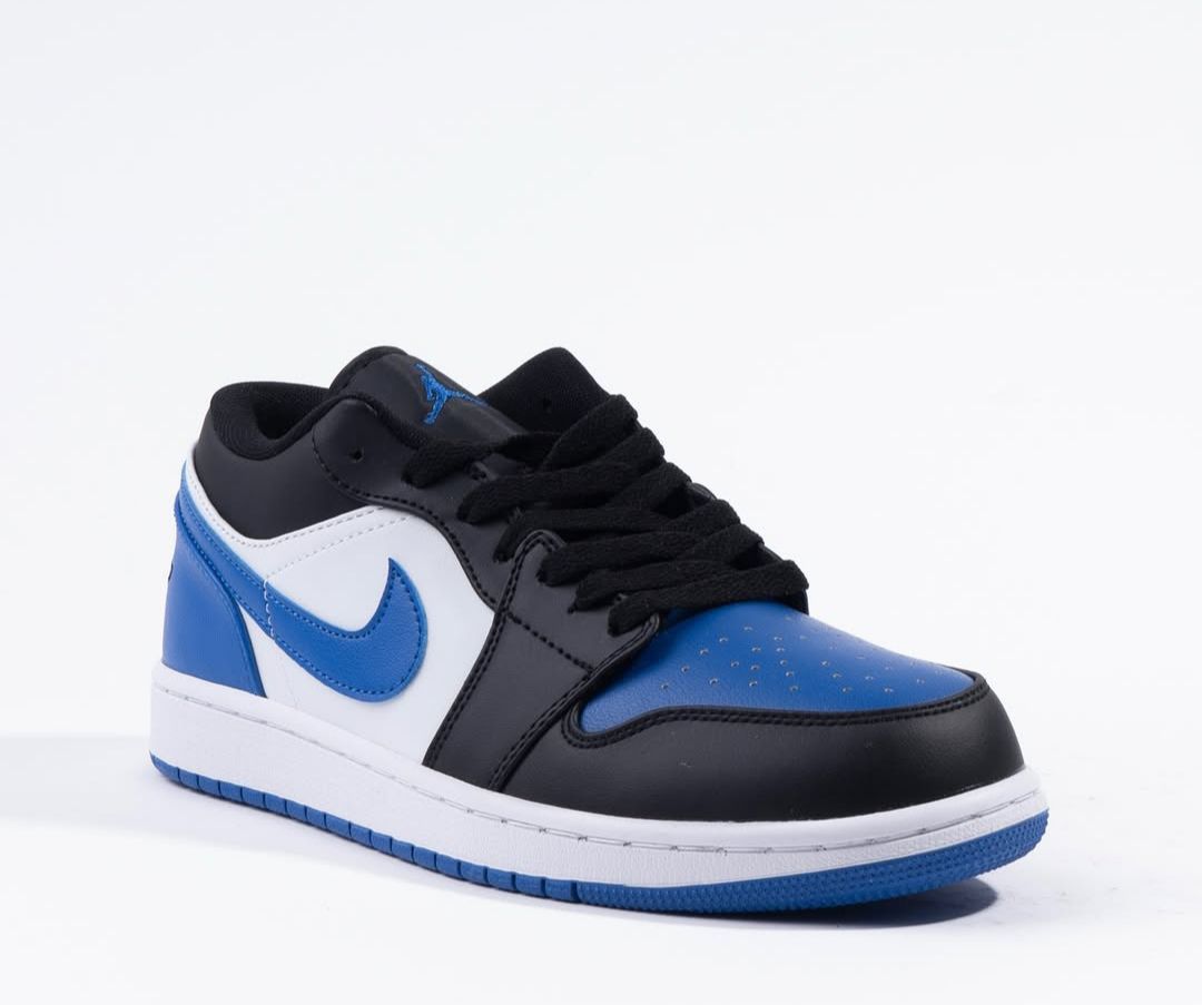 مدل Air Jordan 1 Low Royal Toe با ترکیب رنگ مشکی، سفید و آبی رویال، یکی از محبوبترین نسخههای جردن 1 بدون ساقه. این کتونی با طراحی کلاسیک و رنگبندی چشمگیر، انتخابی عالی برای استایلهای خیابانی و روزمرهست.