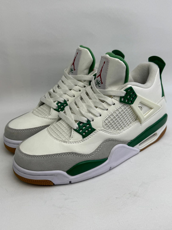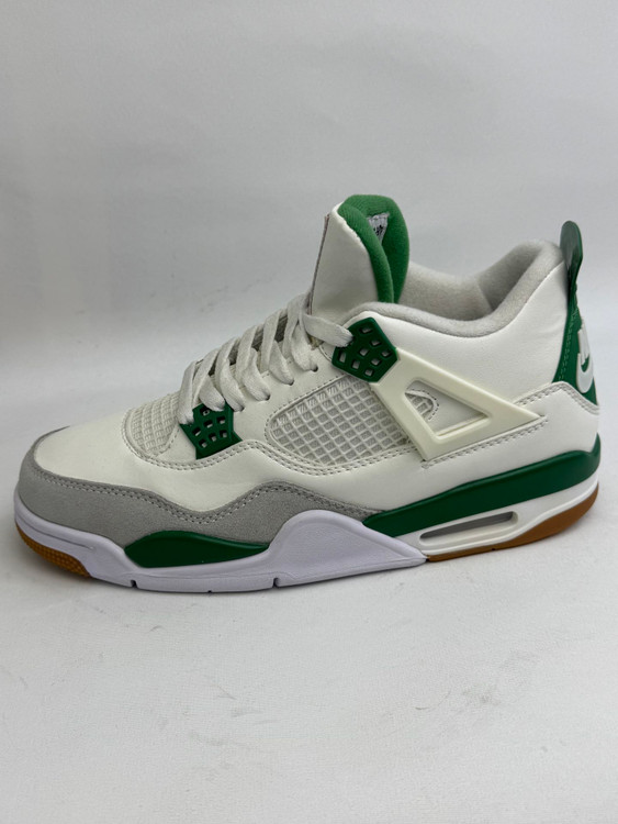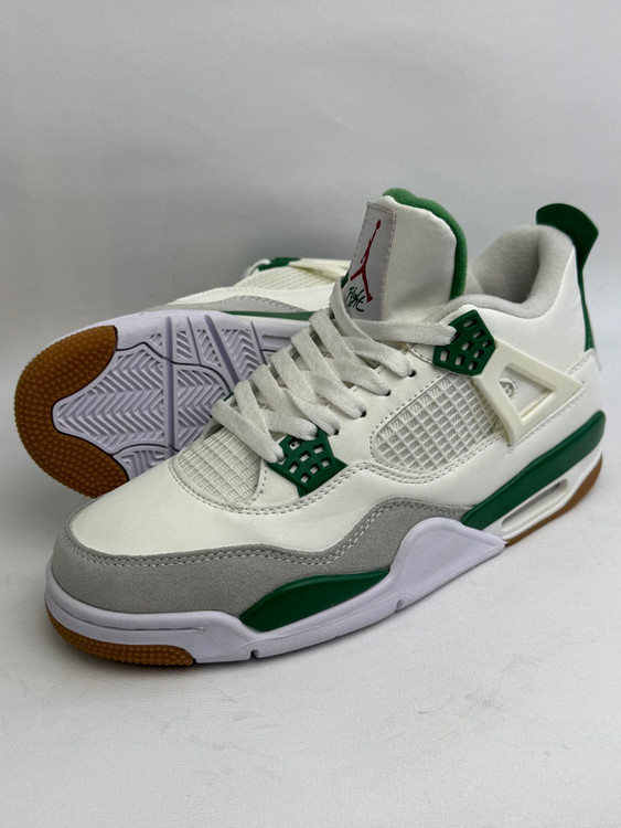 Air Jordan 4 Retro SB Pine Green نسخهای کلاسیک و جذاب از کتونی Air Jordan 4 هست که با رنگبندی Pine Green جلوهای خاص و ترند بهش داده. رویهی کفش از ترکیب چرم باکیفیت و جیر ساخته شده تا دوام بالا و ظاهر لوکس رو تضمین کنه.